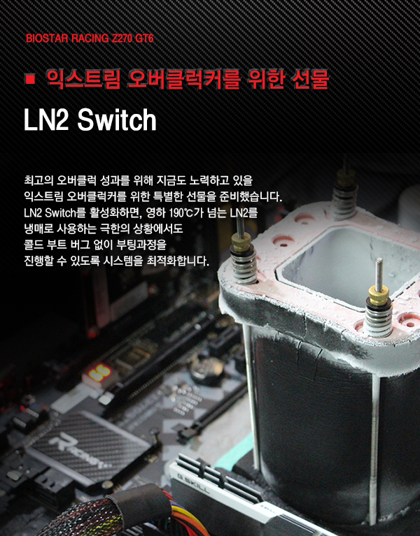 10만 원대 Z270 메인보드로는 예상밖의 기능도 추가됐다. 익스트림 오버클럭커를 위한 LN2 모드가 그것이다.