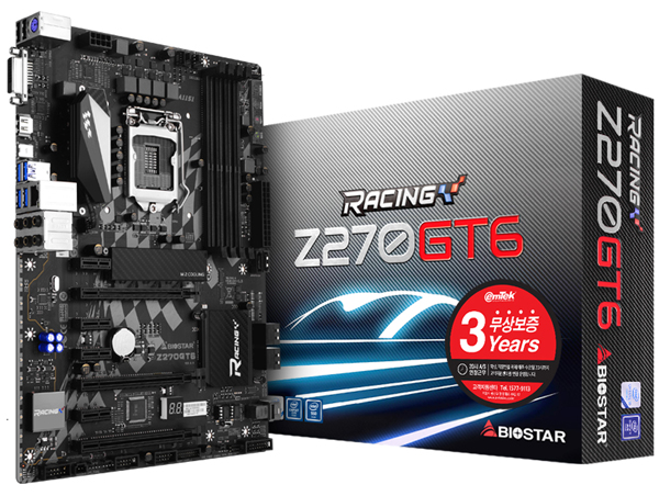 인텔 Z270 칩셋을 탑재한 ATX플랫폼의 메인보드, [BIOSTAR RACING Z270 GT6]는 인텔 7세대 코어 프로세서 '카비레이크'를 완벽히 지원하며, 인텔 옵테인 등 최신 기술에 대응된다. 최대 3,200MHz로 동작하는 4개의 DDR4 메모리 슬롯은 슬롯당 16GB씩, 최대 64GB의 시스템 메모리를 지원하며 6개의 S-ATA III 포트를 비롯한 M.2, U.2의 차세대 인터페이스도 빠짐없이 지원하고 있다.