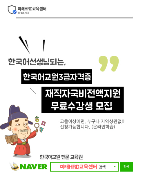 미래HRD교육센터, 온라인 한국어교원자격증 재직자국비전액100%무료교육생 모집