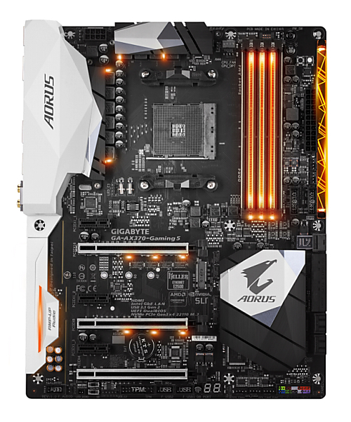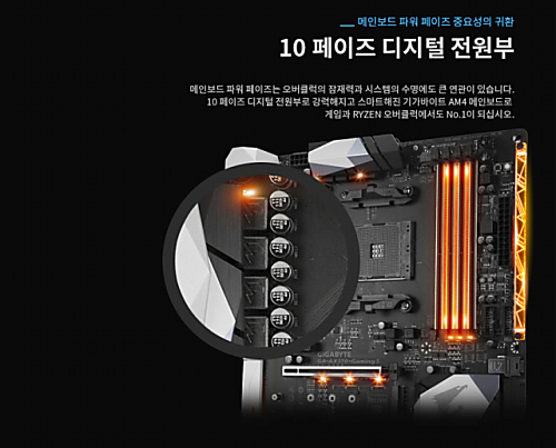 특히 GA-AX370-Gaming5에는 10-페이즈 디지털 전원부를 탑재하여 안정적인 오버클럭은 물론 다양한 환경의 과부화 상태에서도 안정적인 작동이 가능하다. 그리고 AMD 메인보드 최초로 U.2 포트는 물론 USB 3.1 컨트롤러를 네이티브로 탑재하여 일반 USB 3.0 컨트롤러 대비 2배 이상 빨라진 대용량 데이터의 전송이 가능하다.