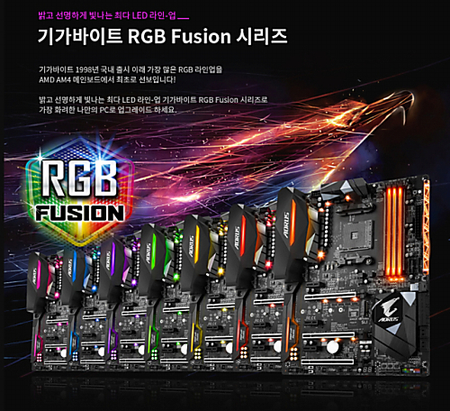 마지막으로 기가바이트 GA-AX370-Gaming5를 포함한 AM4 메인보드는 기가바이트 AMD 메인보드 최초로 RGB LED를 탑재하였으며, RGB LED 컨트롤 앱인 RGB Fusion을 이용하여 자신만의 LED 색상은 물론 작동 모드를 설정하여 자신만의 RGB LED 시스템 튜닝이 가능하다.