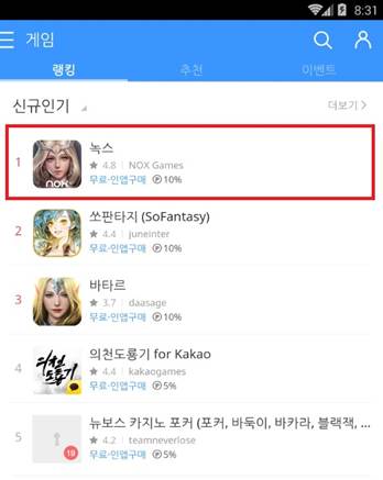 녹스게임즈 ‘녹스(NOX)’, 원스토어 인기게임 1위 달성!