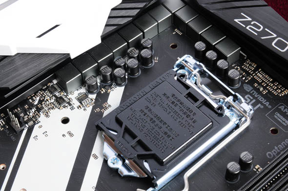 인텔의 전력 기술이 발전을 하고 있어서 사실 2.1 페이즈, 3.1 페이즈만 되어도 코어 시리즈의 프로세서를 작동을 시키는데 크게 문제는 없다. 그래서 저가의 메인보드들 특히나 H110 칩셋 기반의 메인보드들은 모두 생략되거나 낮은 성능의 전원부로 구성이 된 것이 사실이다. 하지만 오버클럭킹을 하려면 많은 페이즈로 구성을 할 수록 프로세서에 줄 수 있는 전원 로드를 나누눌 수 있기 때문에 당연히 전원부는 페이즈 숫자가 많을 수로록 안정적이며 오버클럭킹에 강하다. 이 메인보드는 기본적으로 10 페이즈로 구성이 되어 8개의 페이즈를 프로세서에 그리고 2개의 페이즈는 메모리에 안정적인 전원을 공급한다.